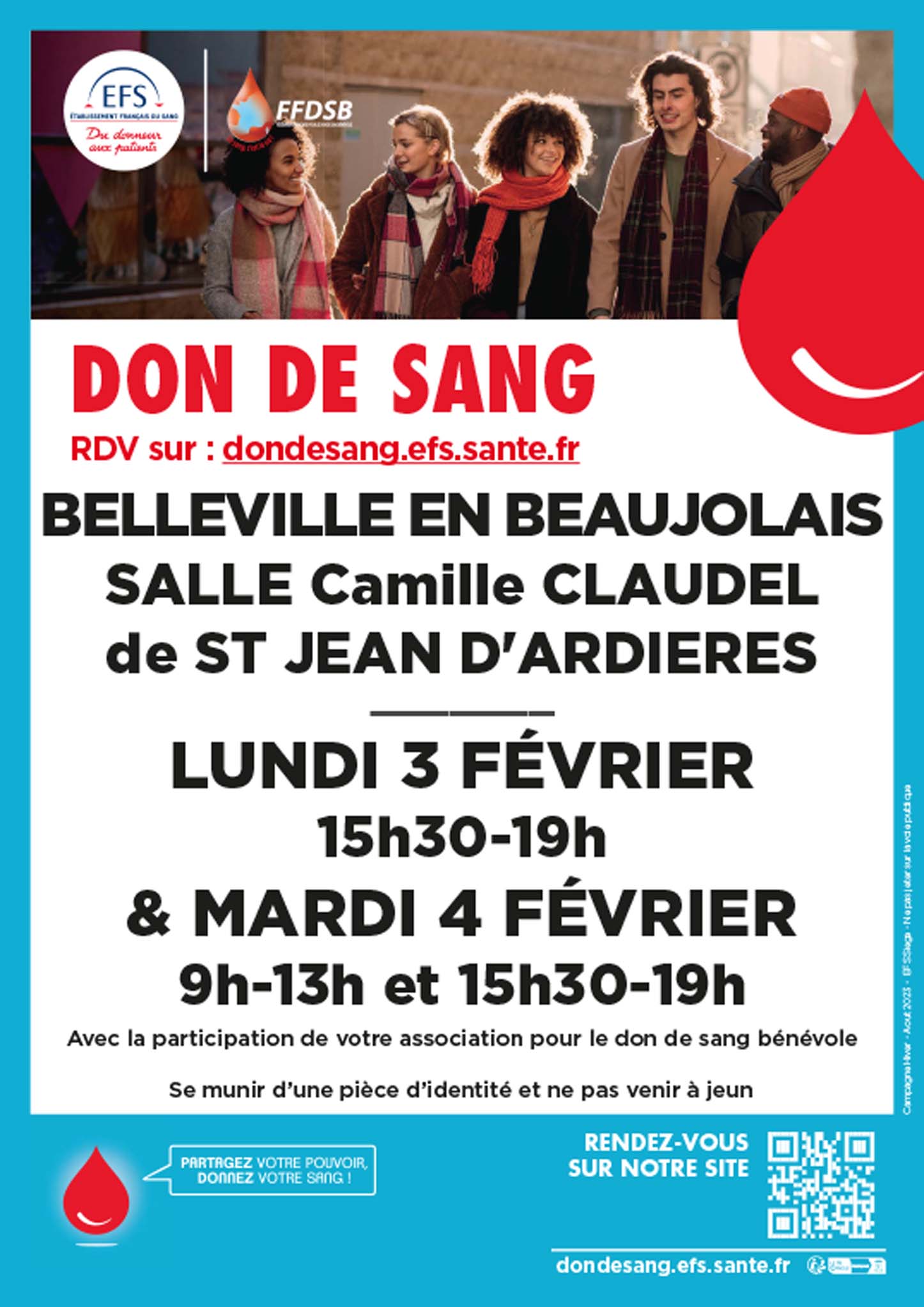 Lundi 3 février de 15h30 à 19h et mardi 4 février de 9h à 13h et de 15h30 à 19h