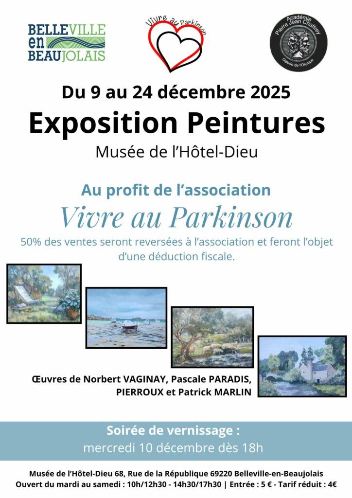 Exposition au profit de l'association "Vivre au Parkinson". 50% des ventes seront reversées à l'association et feront l'objet d'une déduction fiscale.
